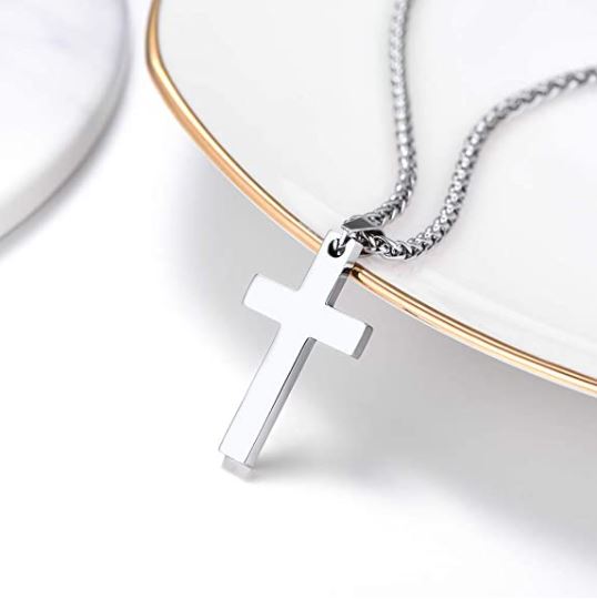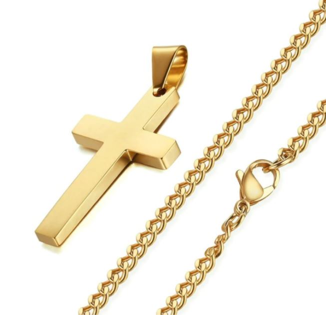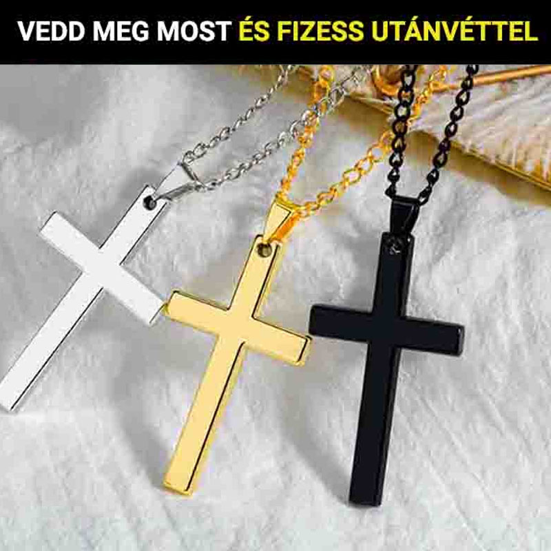 A modern, antiallergén fémötvözetből készült Jézus Keresztje nyaklánc, itt a csiszolt